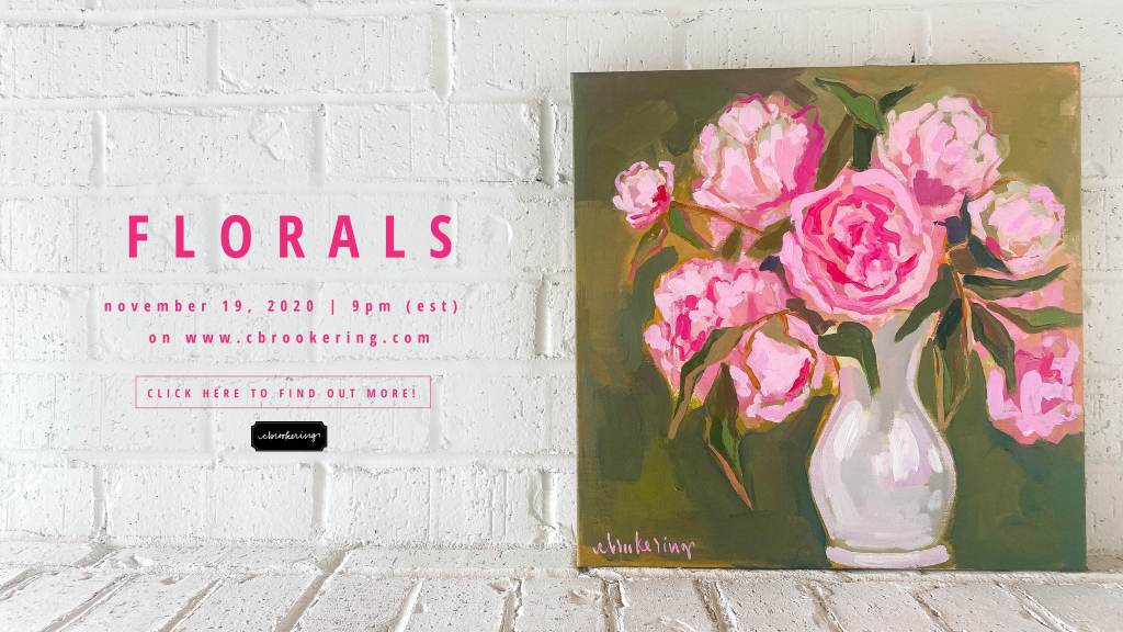 We are SO excited to release some new original floral paintings on November 19, 2020 at 9pm (EST)! These pieces will be available for purchase on https://cbrookering.com/